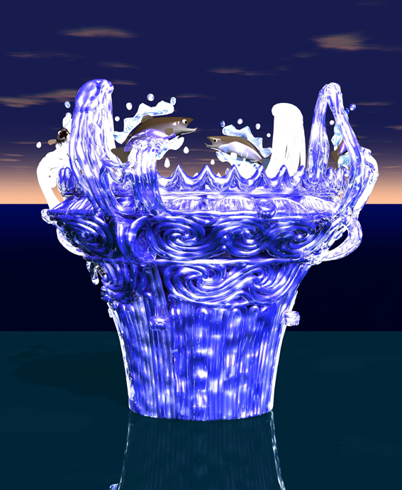 火炎土器の造形を水流で表現します。