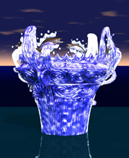 図8-2 作品名:鮭遡上のイメージ(四匹の鮭と水流)。四匹の鮭が鉢のへりを越えようとしている。口は鉢の内側の生まれ故郷の水流を向いている。